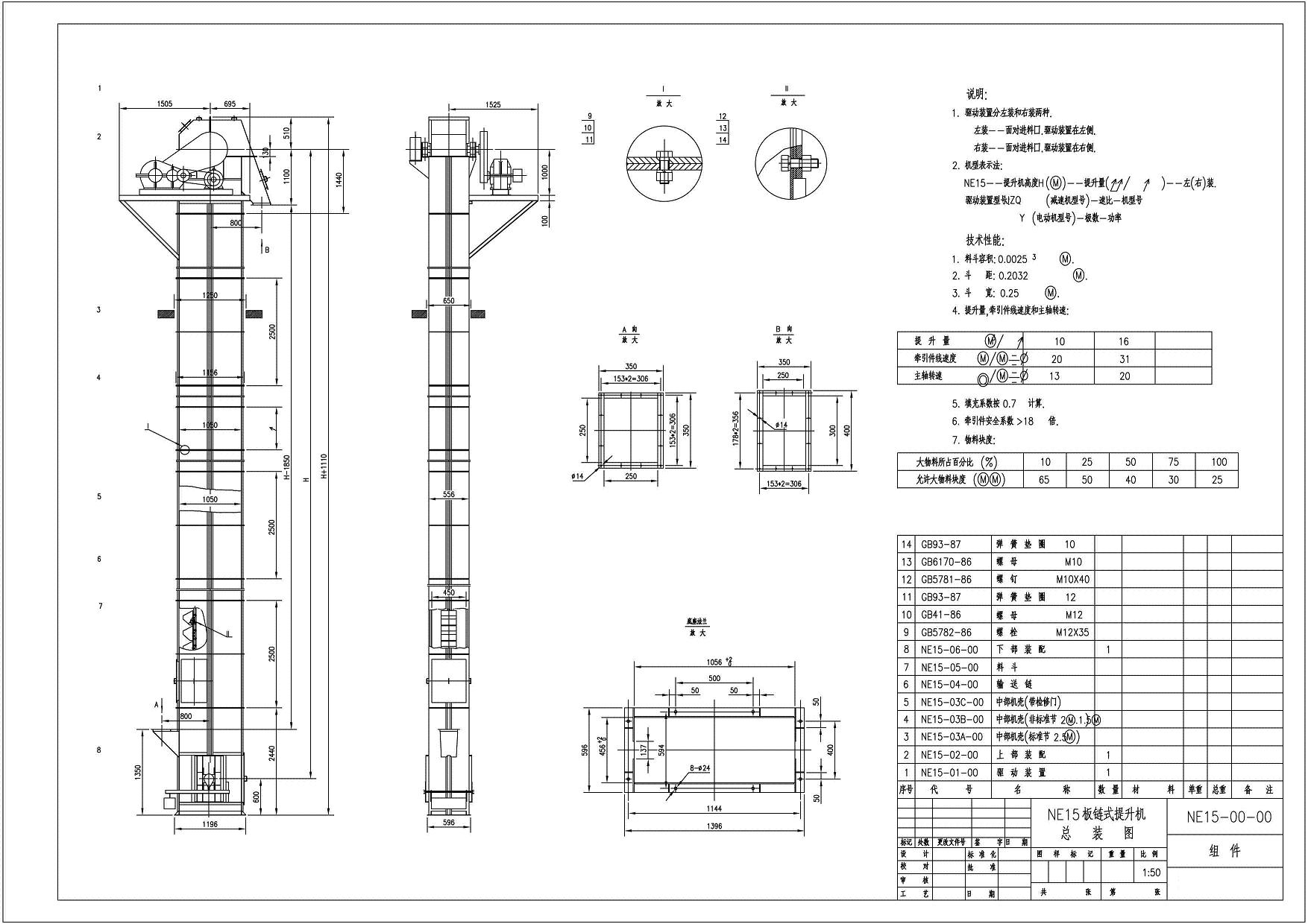 NE15斗式提升機(jī)總裝圖|外形尺寸|地基圖
